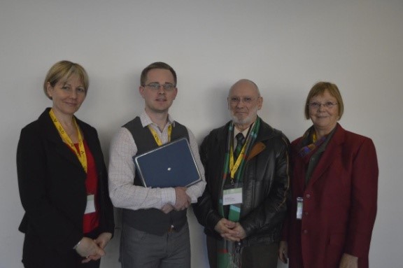 De gauche à droite, sur la photo : la présidente du Prix en 2016, la professeure Sylvie Gendron, Matthias Pepin, le lauréat 2016, le professeur Jean-Marie van der Maren et Colette Baribeau, présidente de l’ARQ.